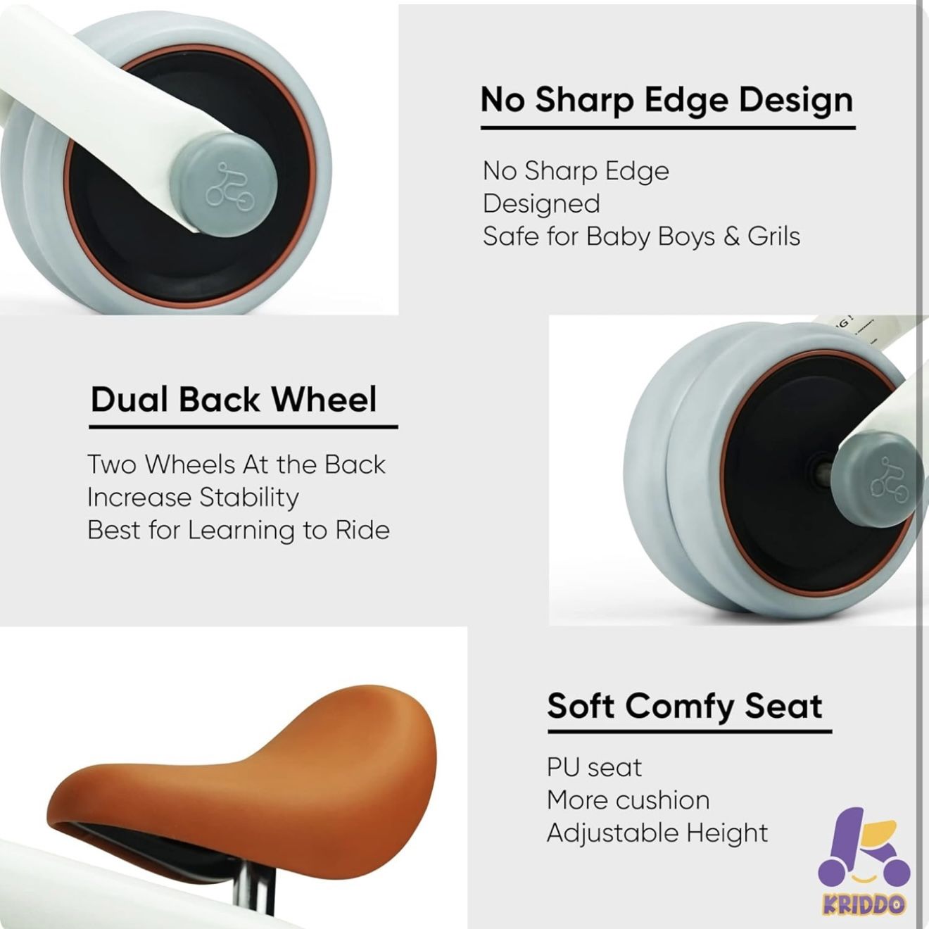 STABLE FOUR-WHEELED BASE – Fitted with soft EVA tires and a 4-wheel base design, this balance bike for 1-year-old’s is easier to push and slide around on when riding on grass, sidewalks, cement, and other common outdoor surfaces.
